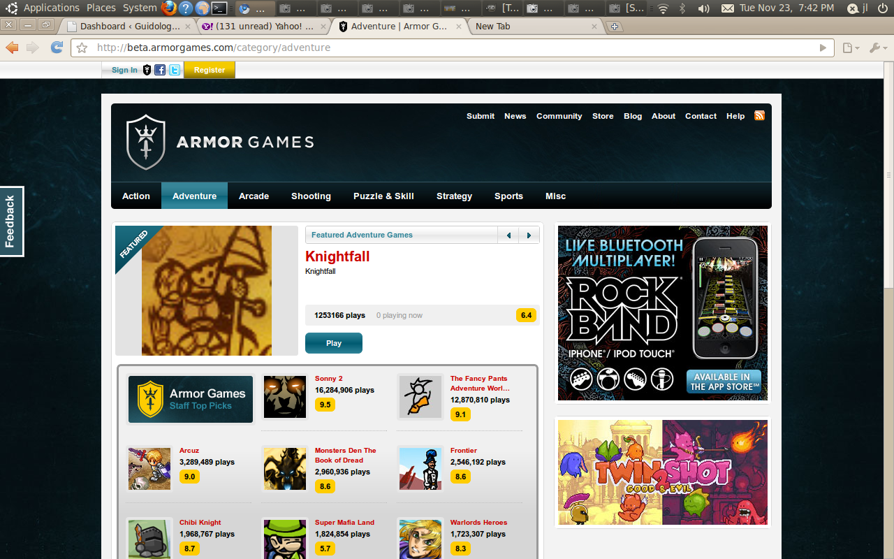 Armor Games v3 during Beta test by a user.